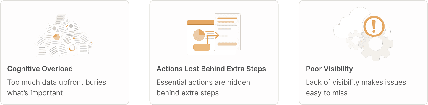 By analyzing the current experience through existing system audit and support ticket review, I identified three critical pain points affecting administrator efficiency: