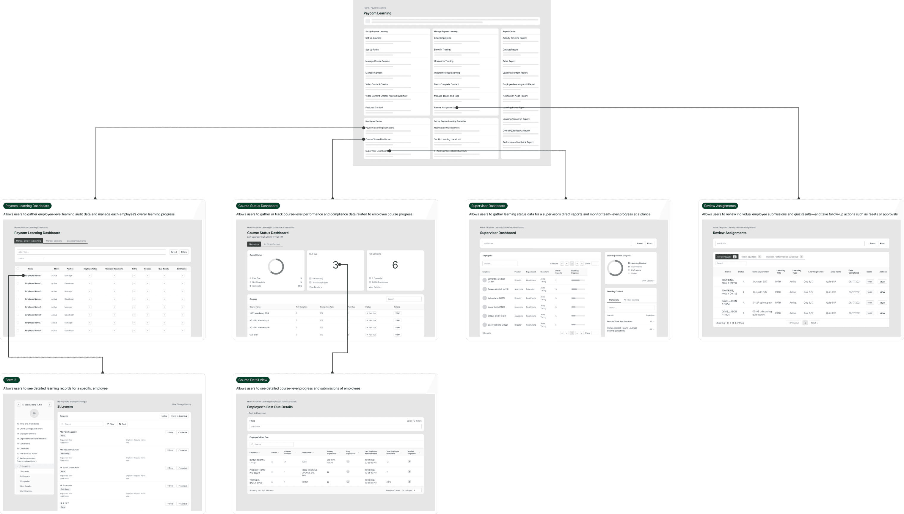 The LMS Dashboard is Paycom’s centralized hub for monitoring employee learning, managing training content, and tracking compliance across large-scale programs. The previous dashboard was fragmented and overly static, making it difficult for administrators to monitor progress, spot compliance risks, and take action quickly. These gaps created inefficiencies for teams that needed real-time visibility and dependable oversight.