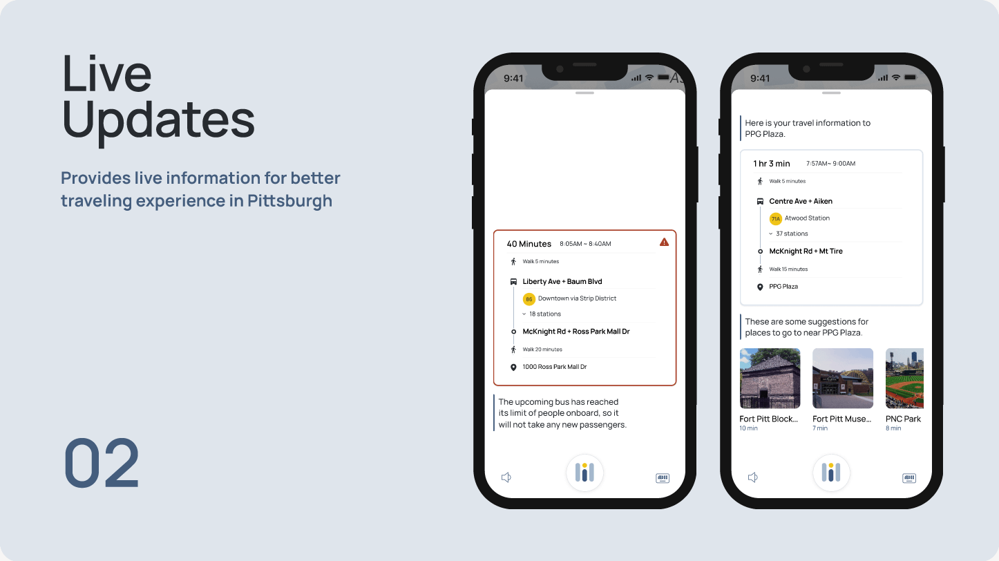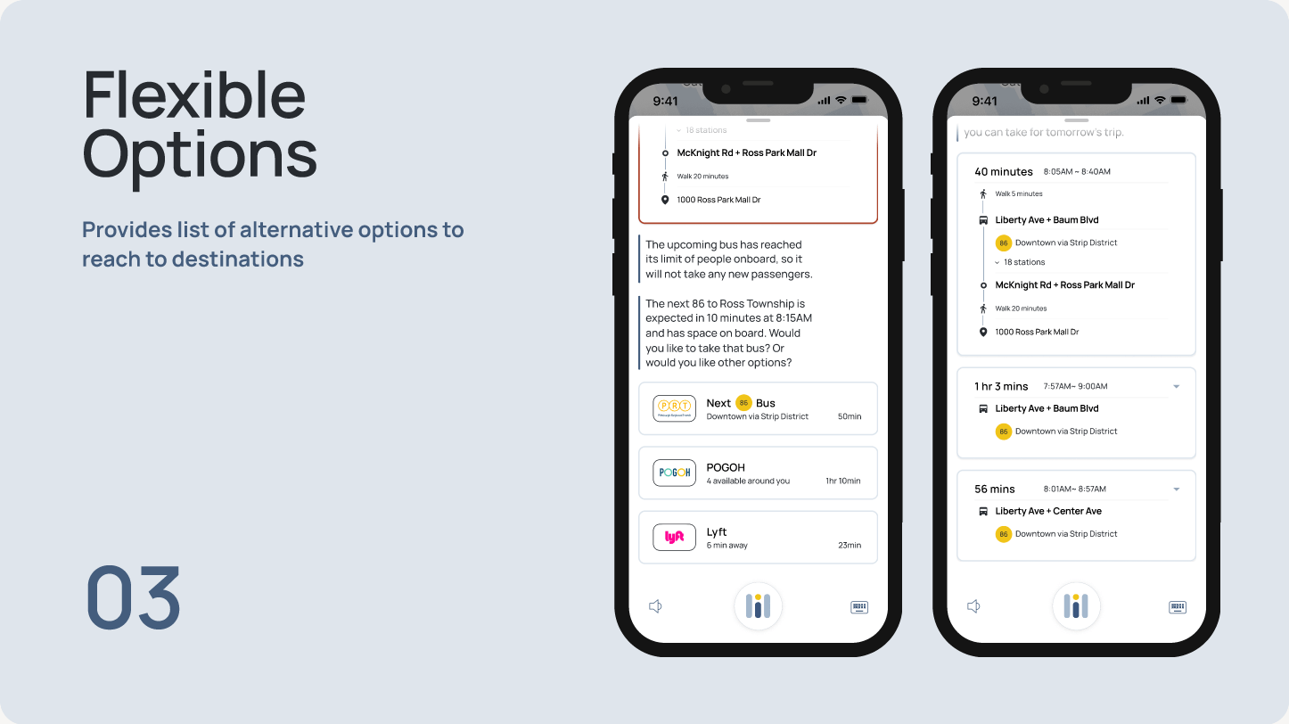 Existing transit tools focus on static information, but often fall short when passengers need guidance most. This project explores how a conversational, context-aware assistant could provide situational support during moments of uncertainty—helping riders understand what’s happening and what to do next without having to piece information together on their own.