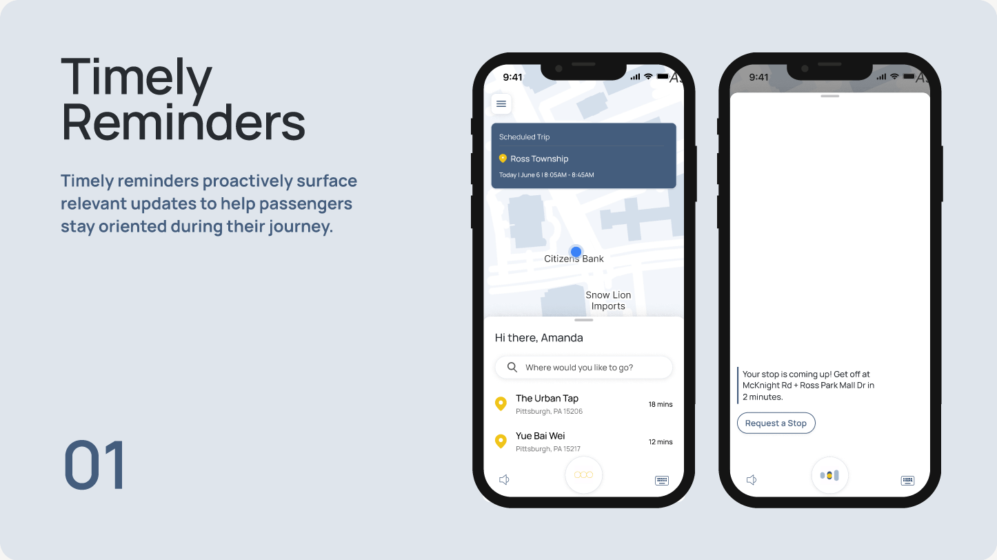 These findings showed that while existing systems are effective at delivering information, they often fail to account for the emotional and situational context of passengers navigating stressful travel scenarios. Passengers need a unified, adaptive interface that responds to their context and provides reassurance in real time—revealing a clear opportunity to rethink transit assistance as a more conversational and empathetic experience. This led to the guiding question: